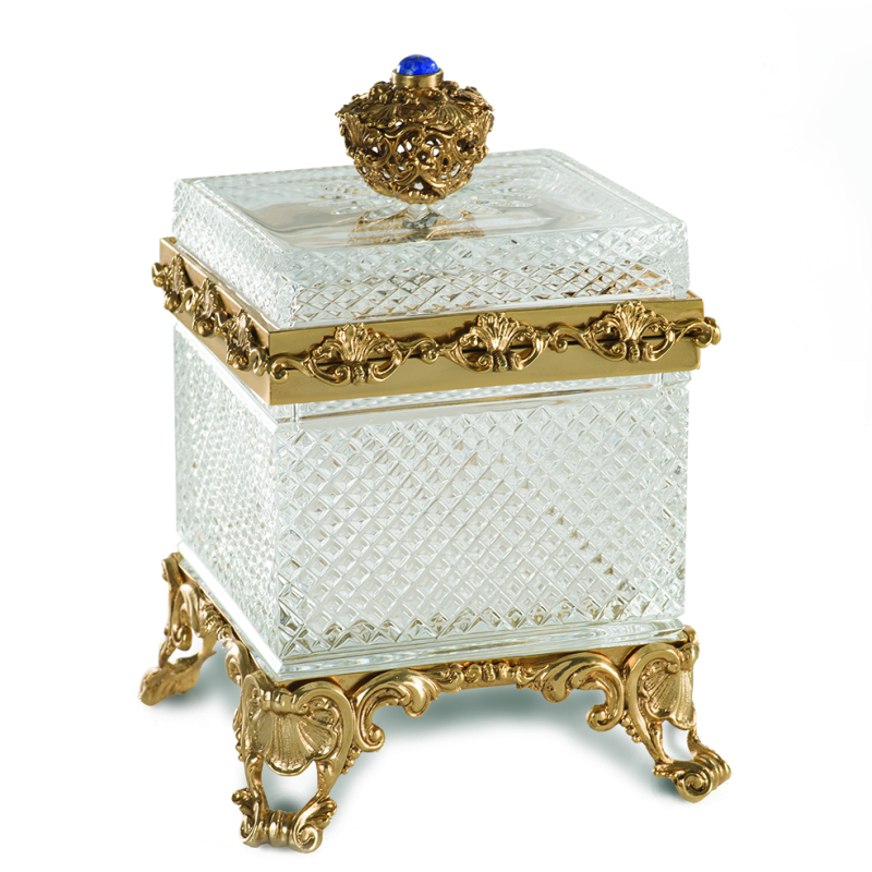 Ottone dorato, cristallo chiaro e lapislazzulo