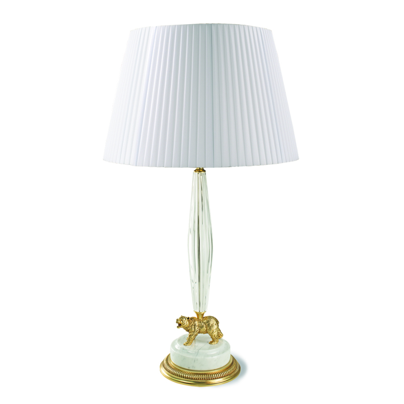 Bronzo dorato, marmo venato bianco e cristallo chiaro