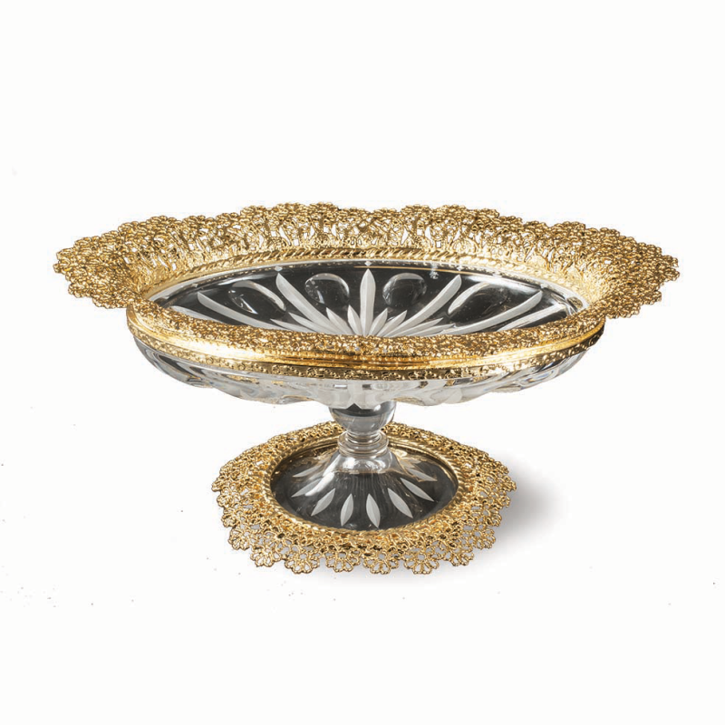 Fusione  a cera persa dorata : “Fiori” e cristallo trasparente