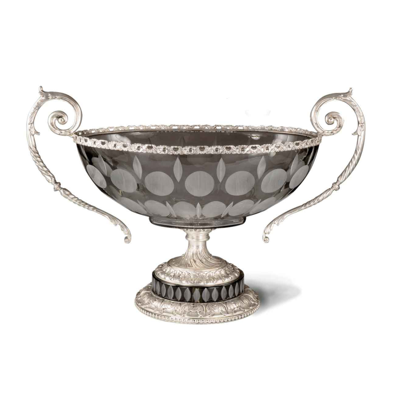 Bronzo argentato patinato e cristallo fumè molato a mano con taglio opaco
