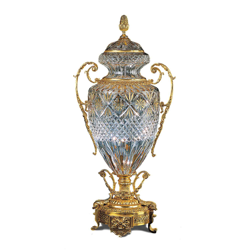 Bronzo dorato e cristallo trasparente  decorato in oro zecchino