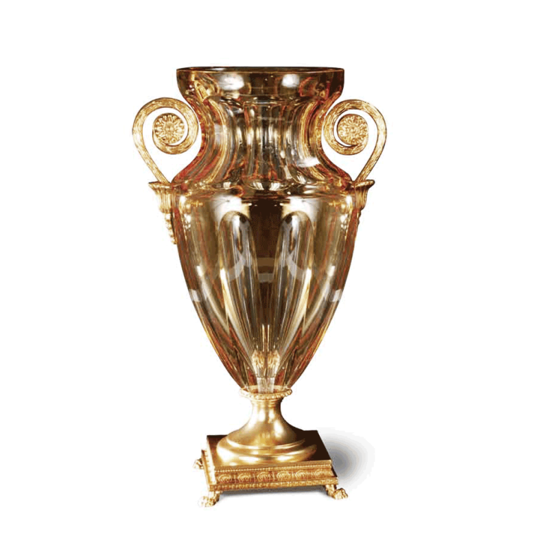 Bronzo dorato e cristallo trasparente incamiciato ambra