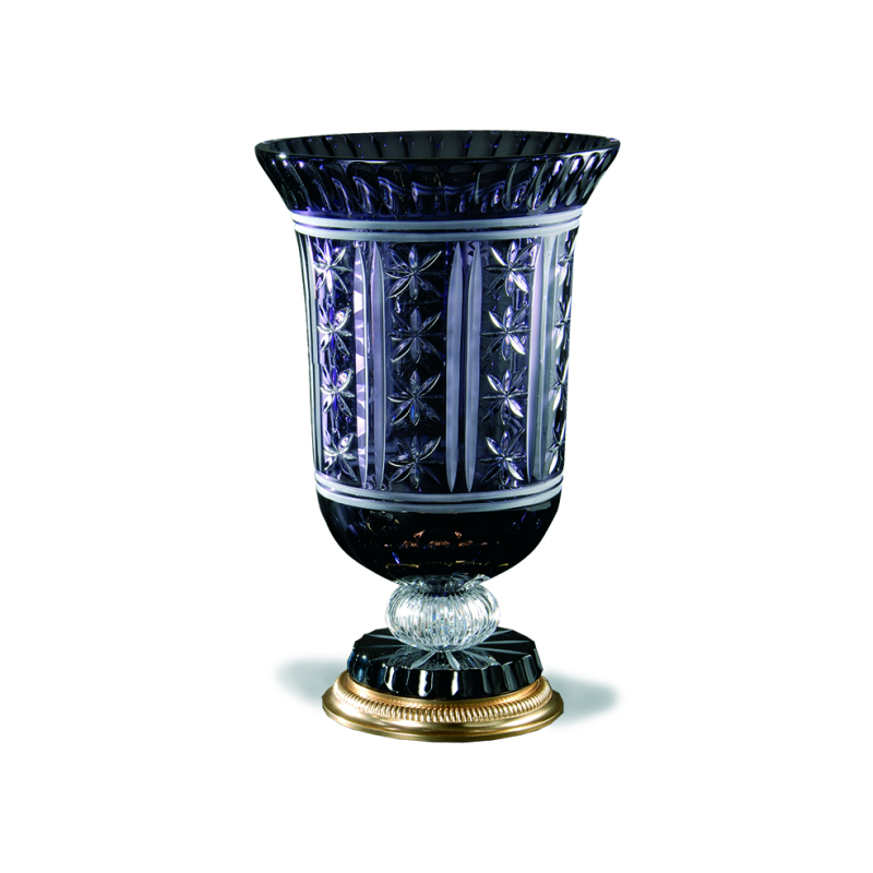 Bronzo dorato e cristallo ametista con incisioni satinate