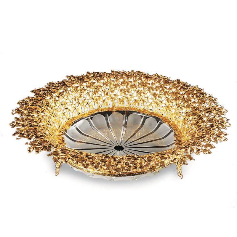 Fusione a cera persa: ” Edera” dorata e cristallo chiaro tagliato a coste opache e visù