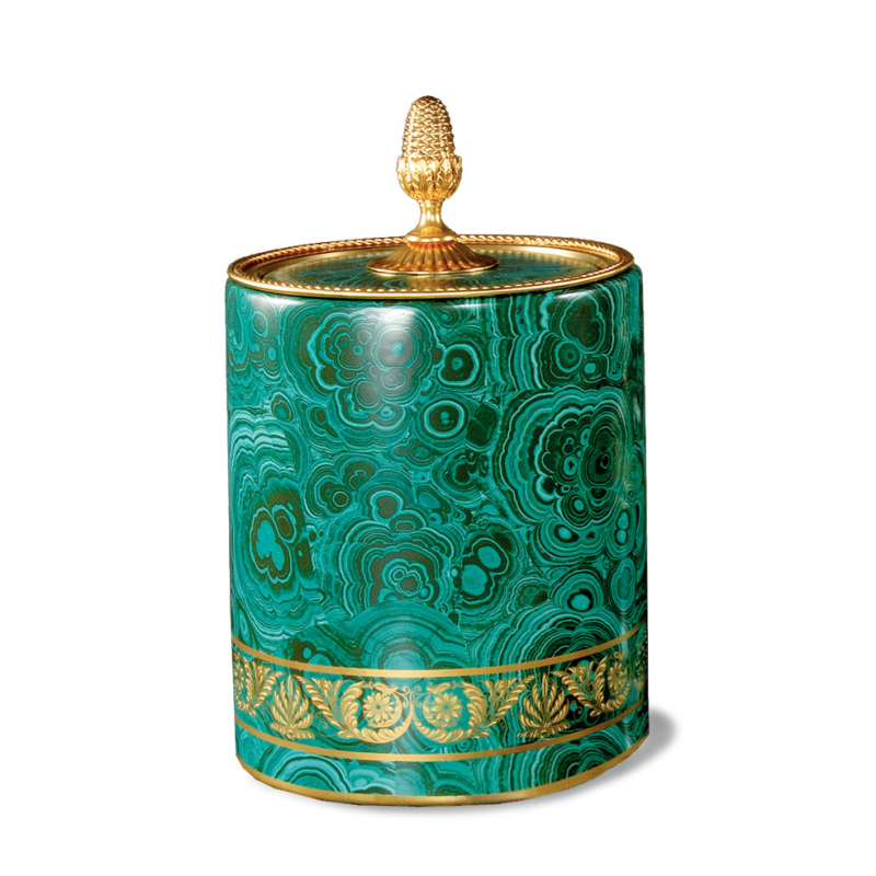 Ottone dorato e porcellana decorata malachite e oro zecchino