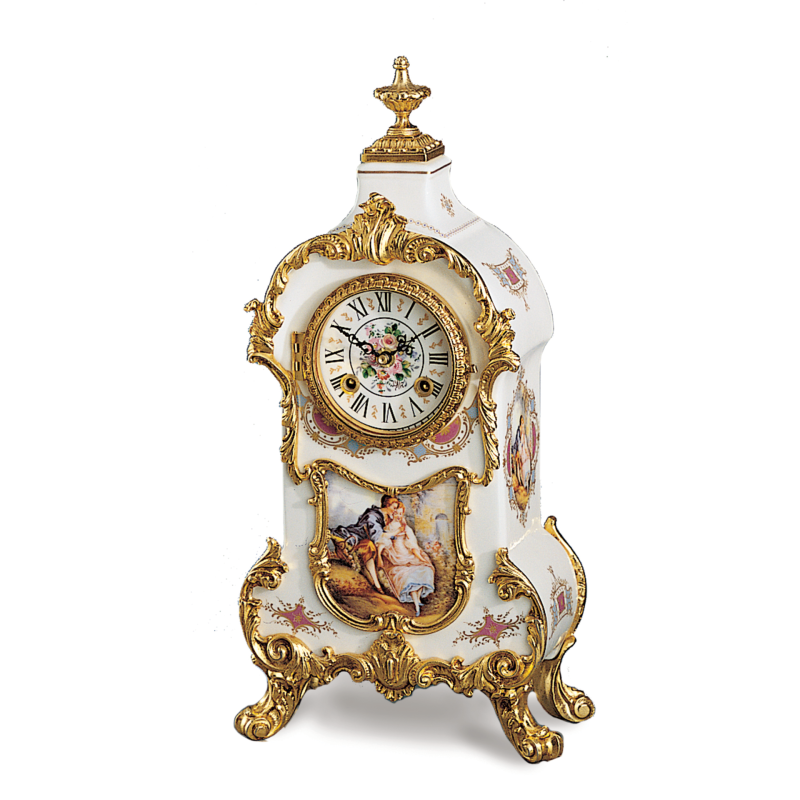 Mechanical 8 days wind movement and separate winding for alarm, chiming evry half-hour