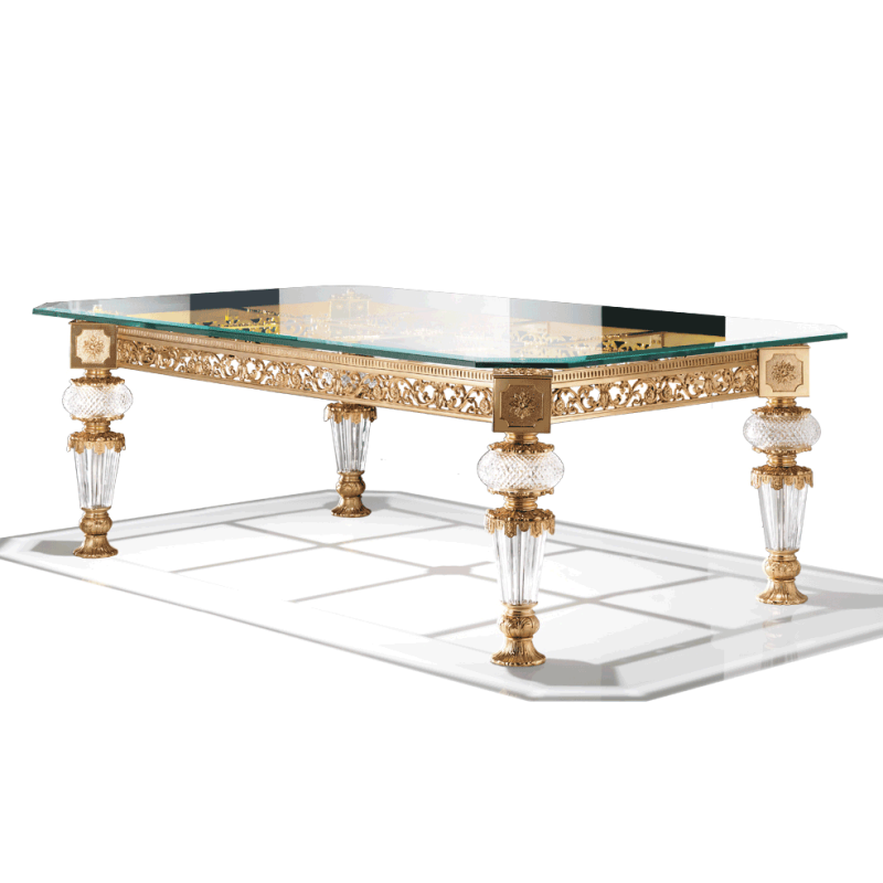 Golden bronze, clear crystal and tempered glass top