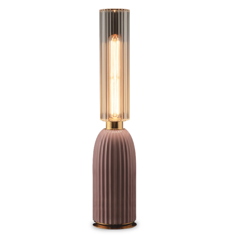 Porcellana rosa antico e paralume in vetro rigato