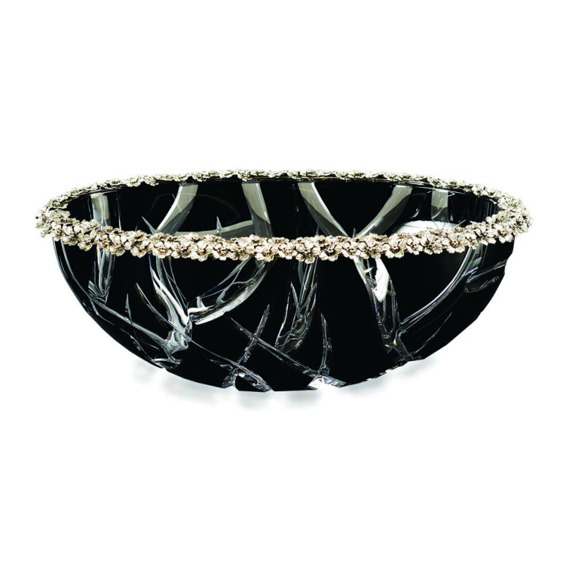 Посеребренная бронза и черный и прозрачный хрусталь.