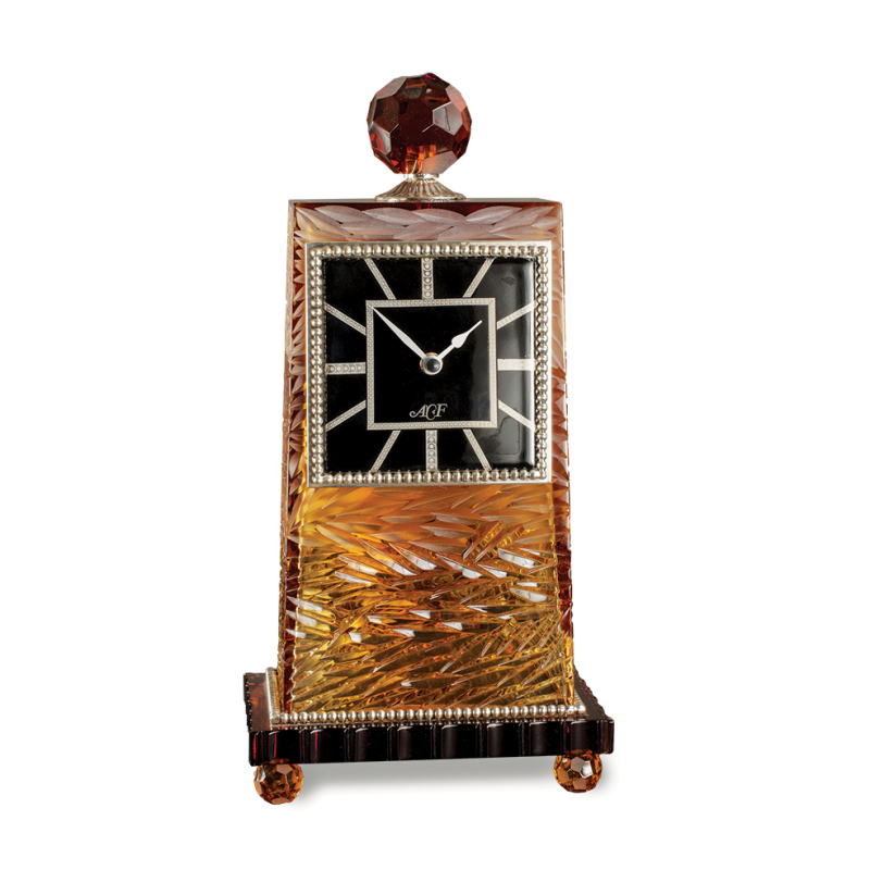 Посеребренная бронза, янтарь и черный хрусталь, декорированный фарфор.
