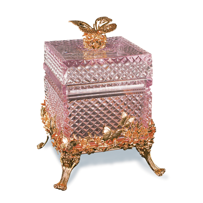 Бабочки из золотистой восковой литой латуни и розового хрусталя.