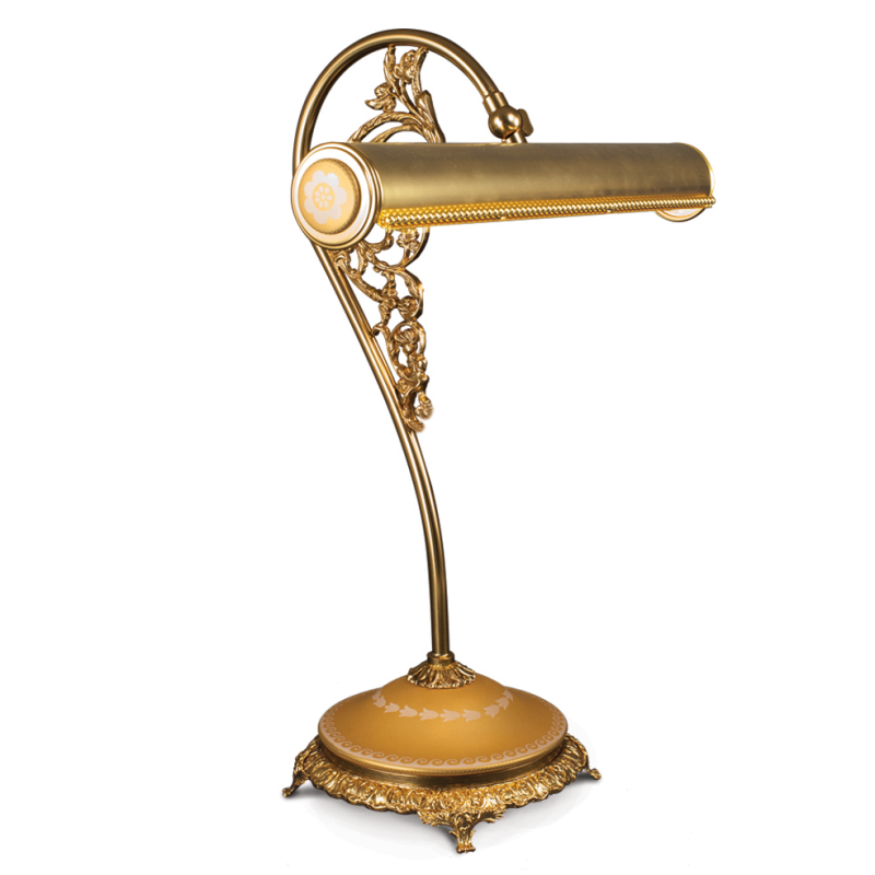 Позолоченная бронза и фарфор, украшенные золотым шелком.