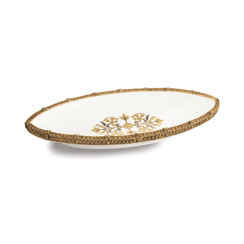 Позолоченная латунь и декорированный фарфор.