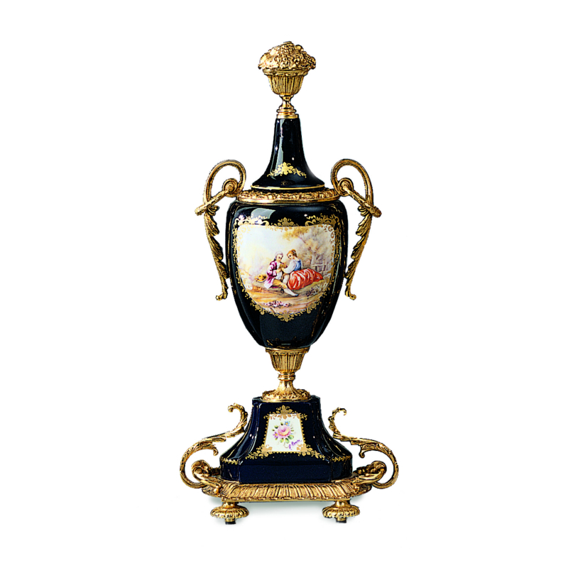 Позолоченная бронза и декорированный фарфор.