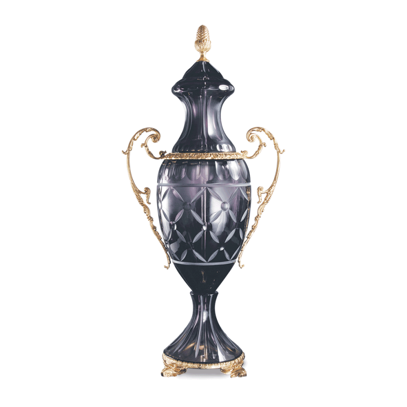 Позолоченная бронза и кристалл аметиста с атласной гравировкой.