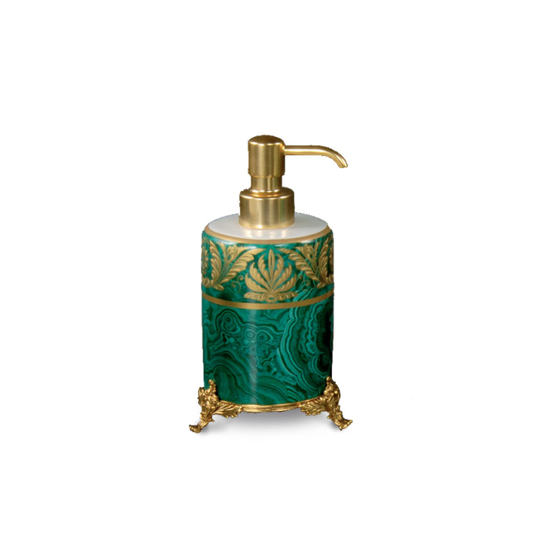 Позолоченная латунь и фарфор, украшенные малахитом и чистым золотом.