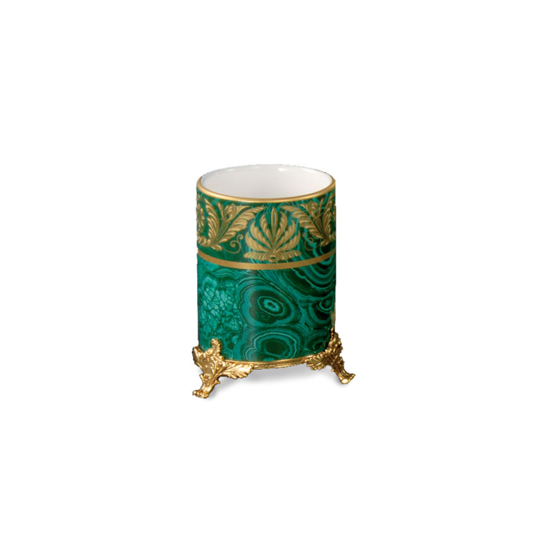 Позолоченная латунь и фарфор, украшенные малахитом и чистым золотом.