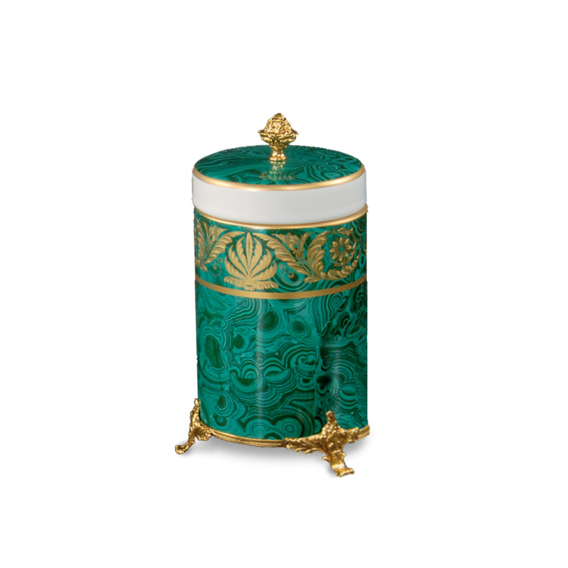 Позолоченная латунь и фарфор, украшенные малахитом и чистым золотом.
