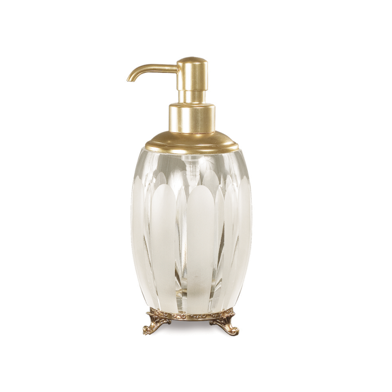 Золотая латунь и прозрачный хрусталь с непрозрачной ребристой и лицевой огранкой.