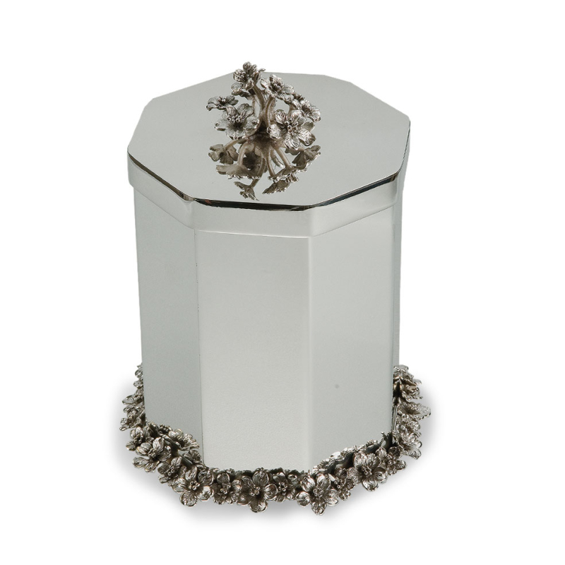 Хромированная латунь с посеребренными деталями, отлитыми по выплавляемым моделям.
