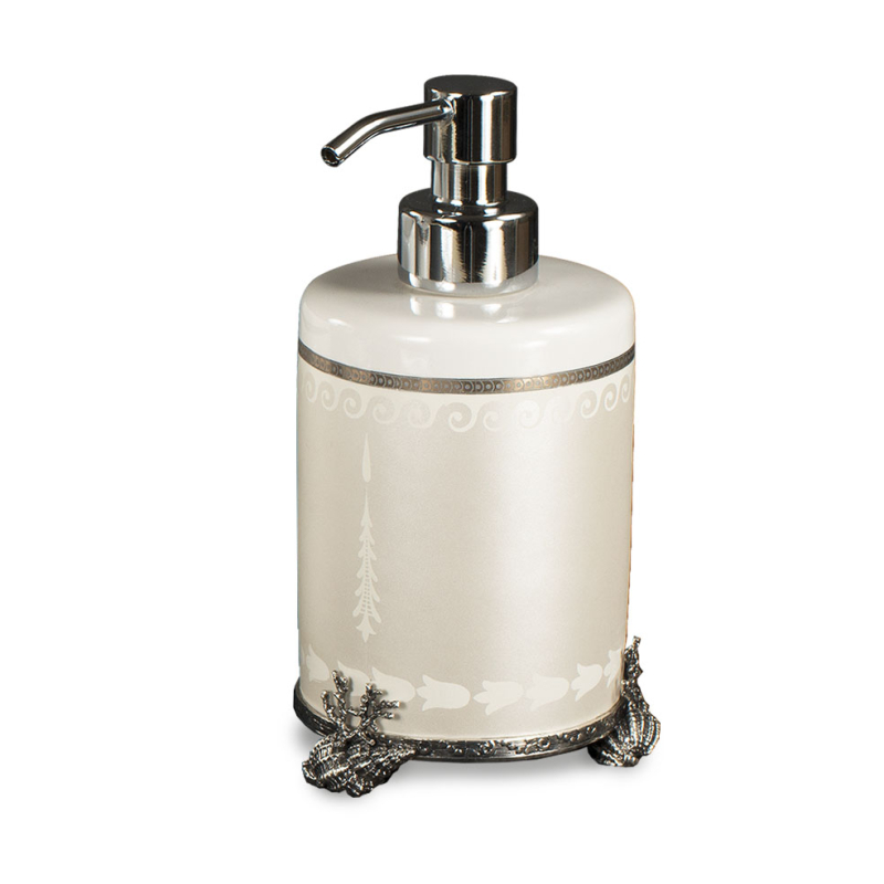 Чеканные и посеребренные детали, отлитые по выплавляемой модели, фарфор, декорированный платиной и серебряным шелком с матовым белым узором.