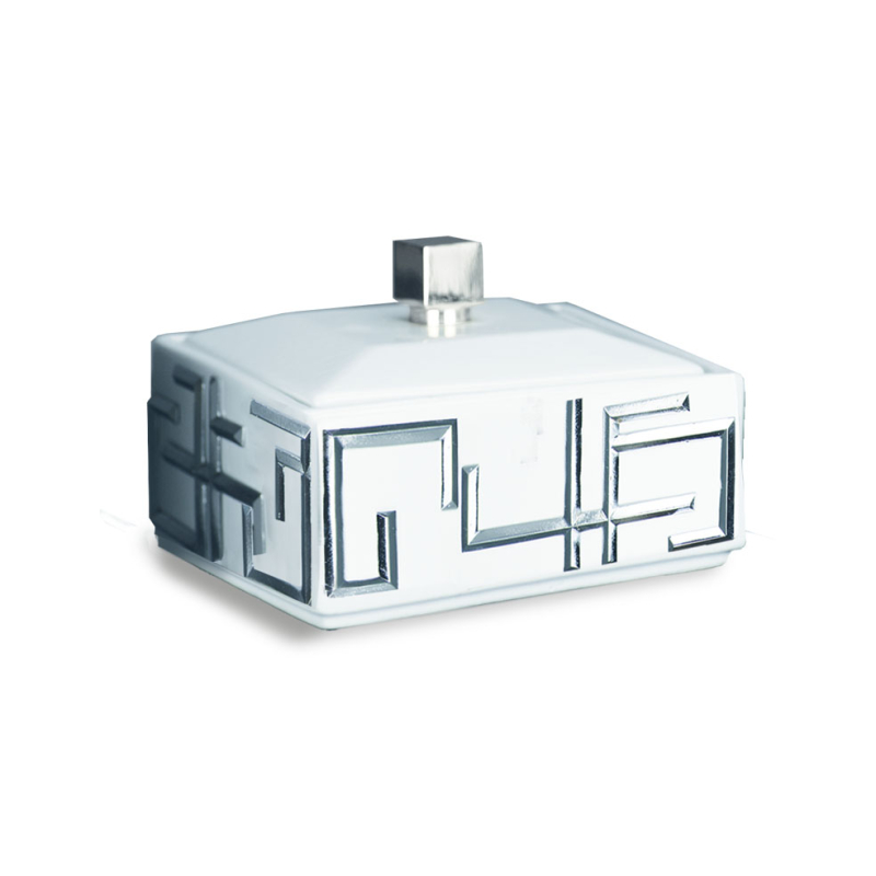 Никелированная латунь и белый фарфор.