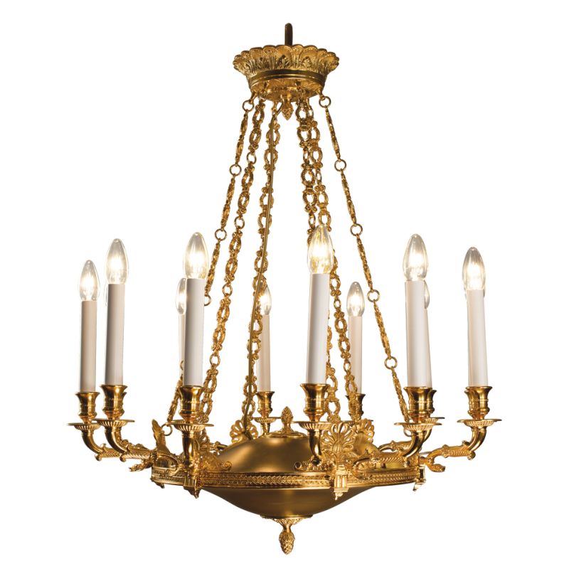 Позолоченная бронза, корпус выполнен из металла, окрашенного в полуглянцевый золотой цвет.